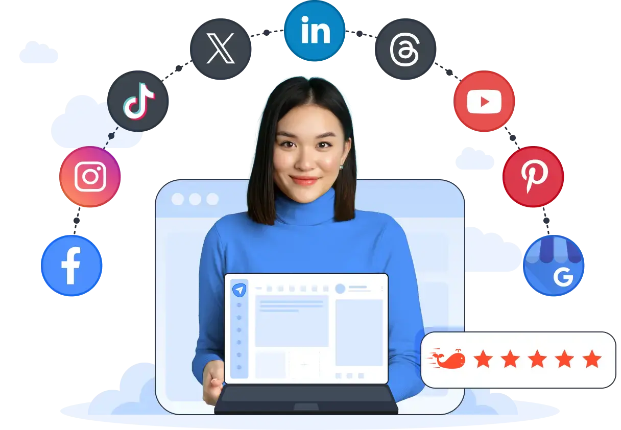 一个平台管理海外主流社交媒体平台,实现内容创作、发布、管理到营销获客的全流程操作,可以利用AI技术自动创作并实现矩阵化的社交媒体管理