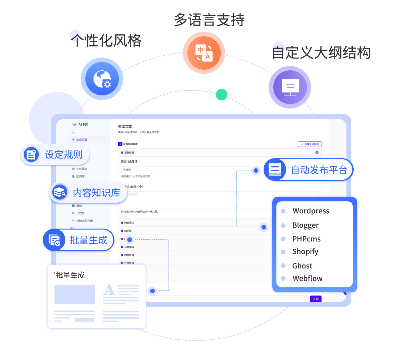 • 自动批量内容生成